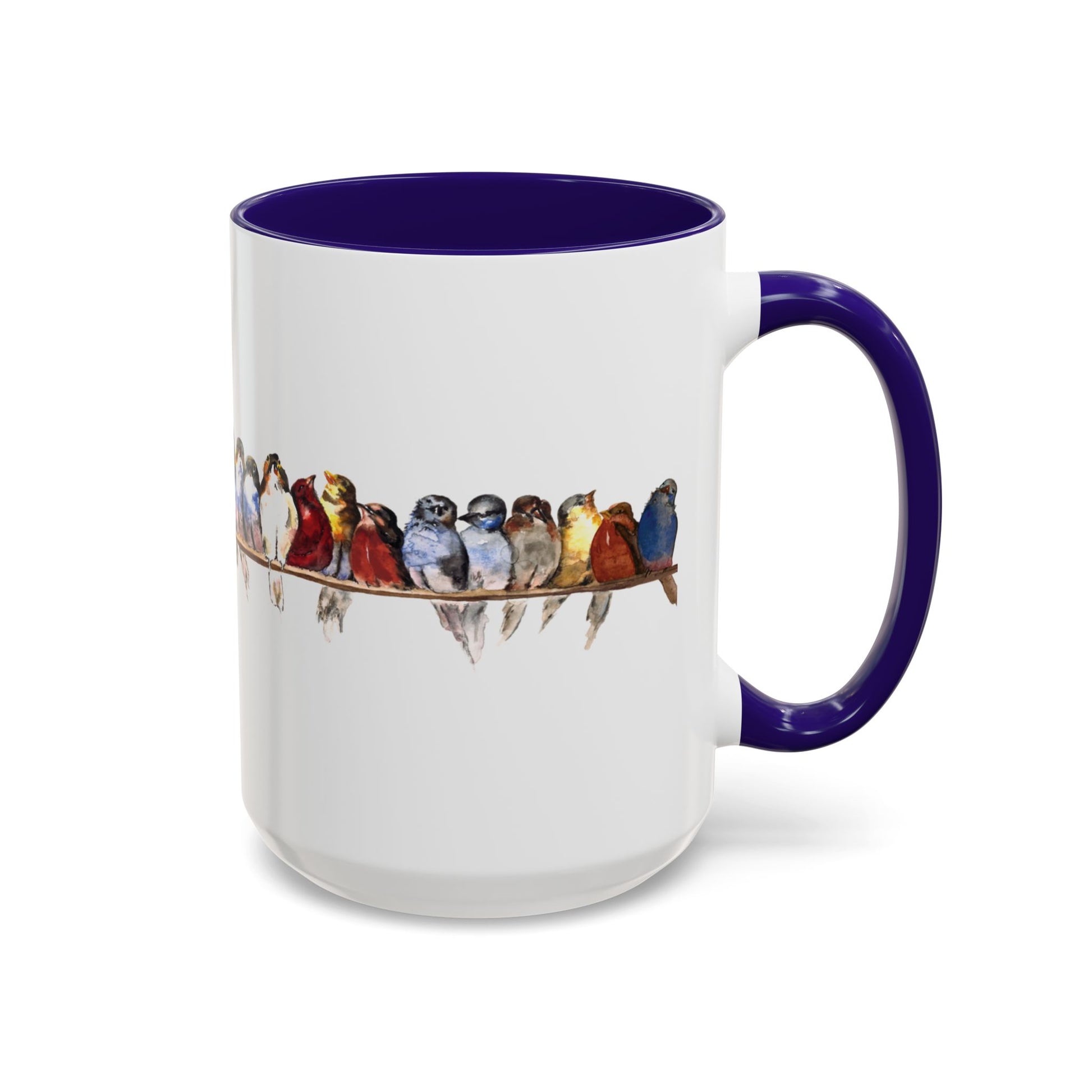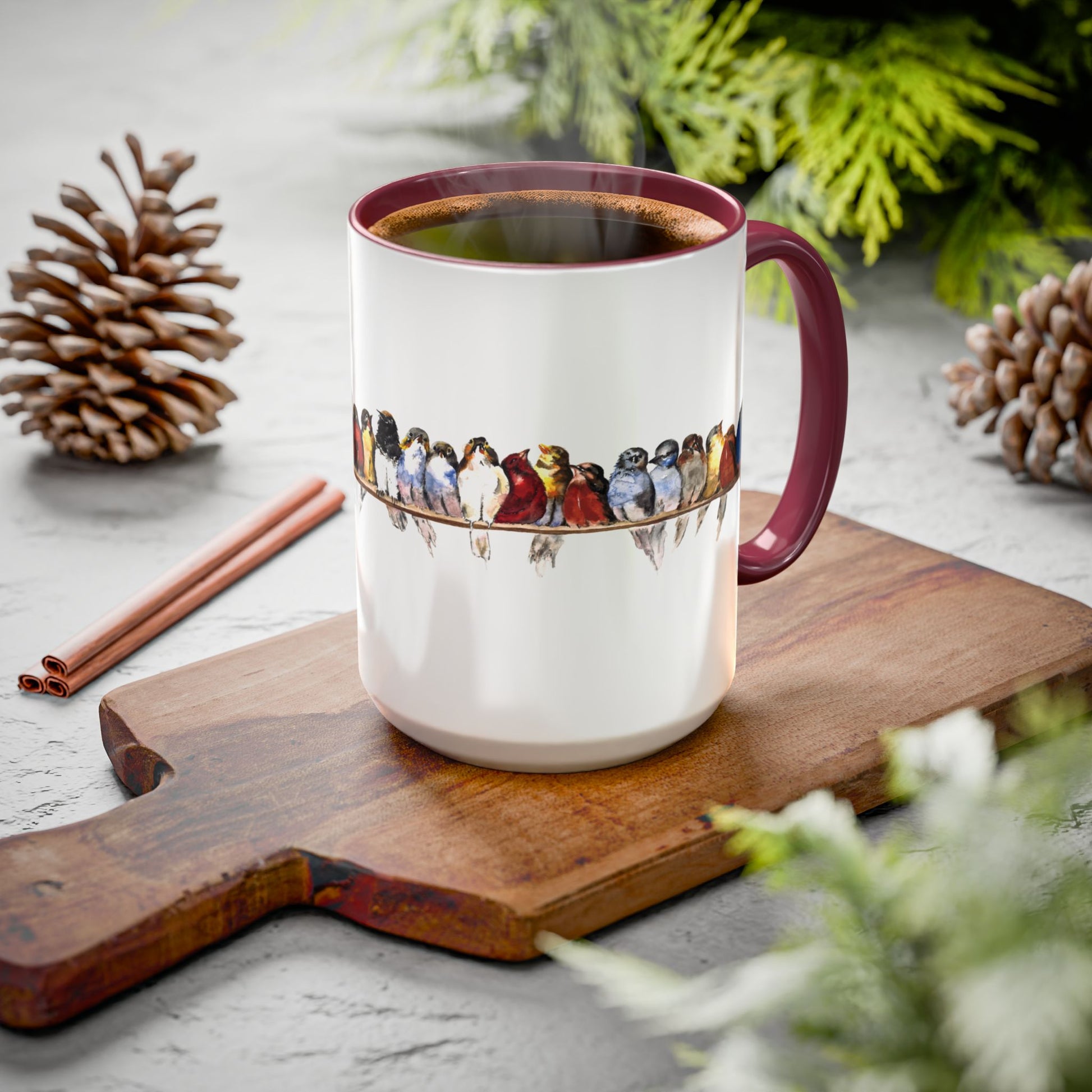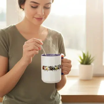 Brighten your morning routine instantly with playful birds that vibrantly wraparound the whole mug.