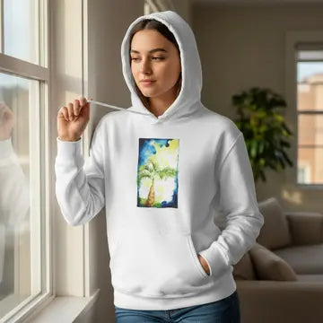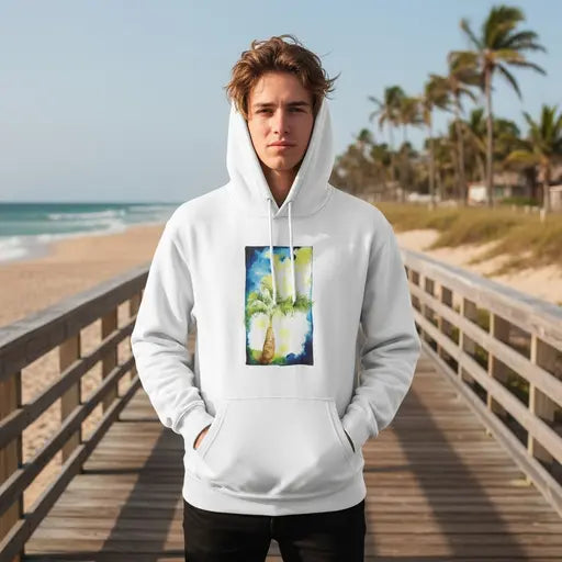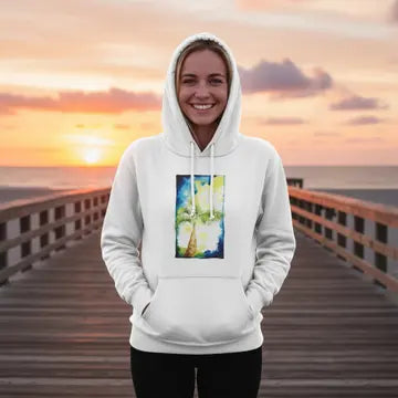 Elevate your wardrobe with a hoodie that blends playful artistry and eco-friendly comfort.