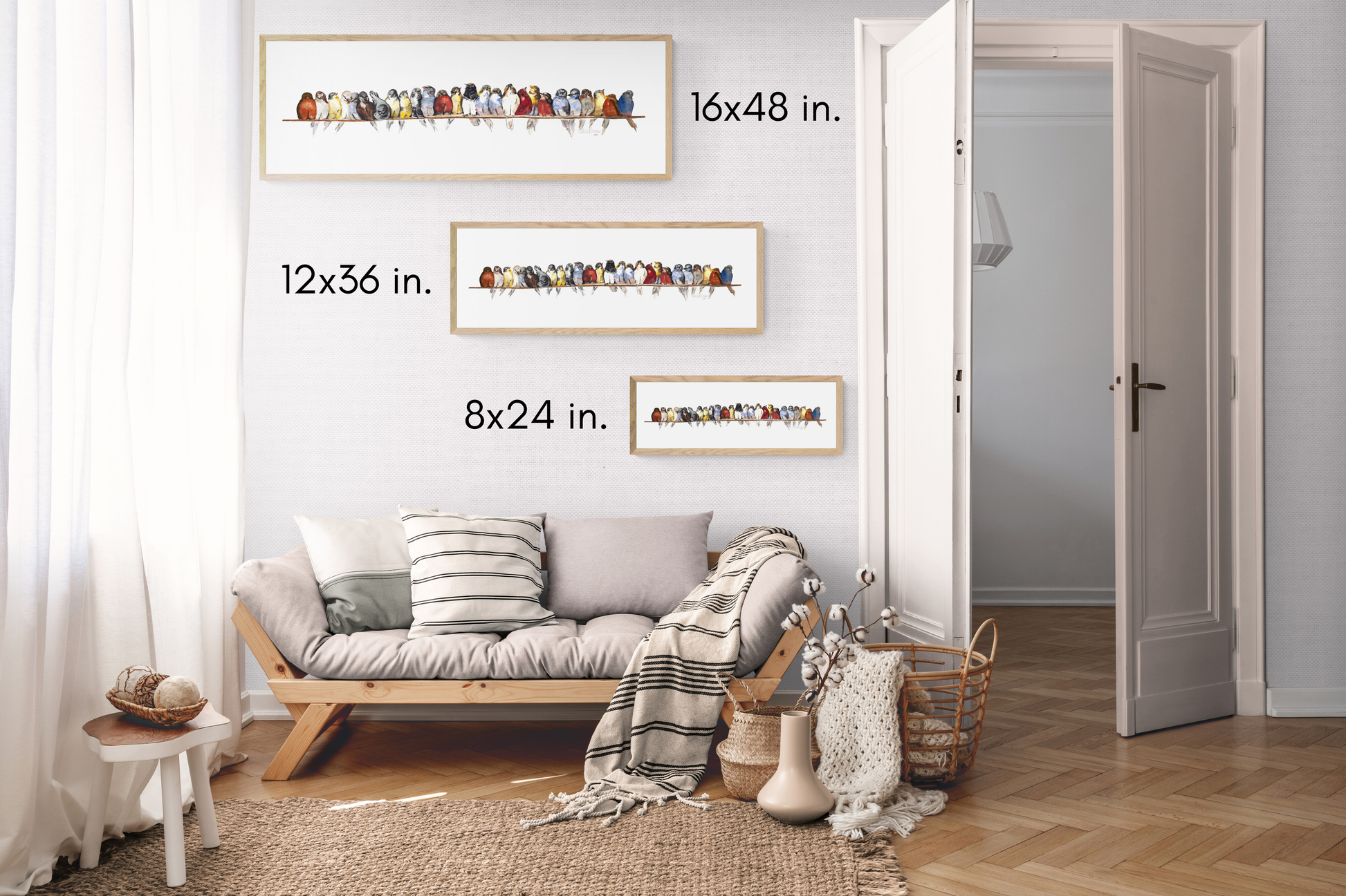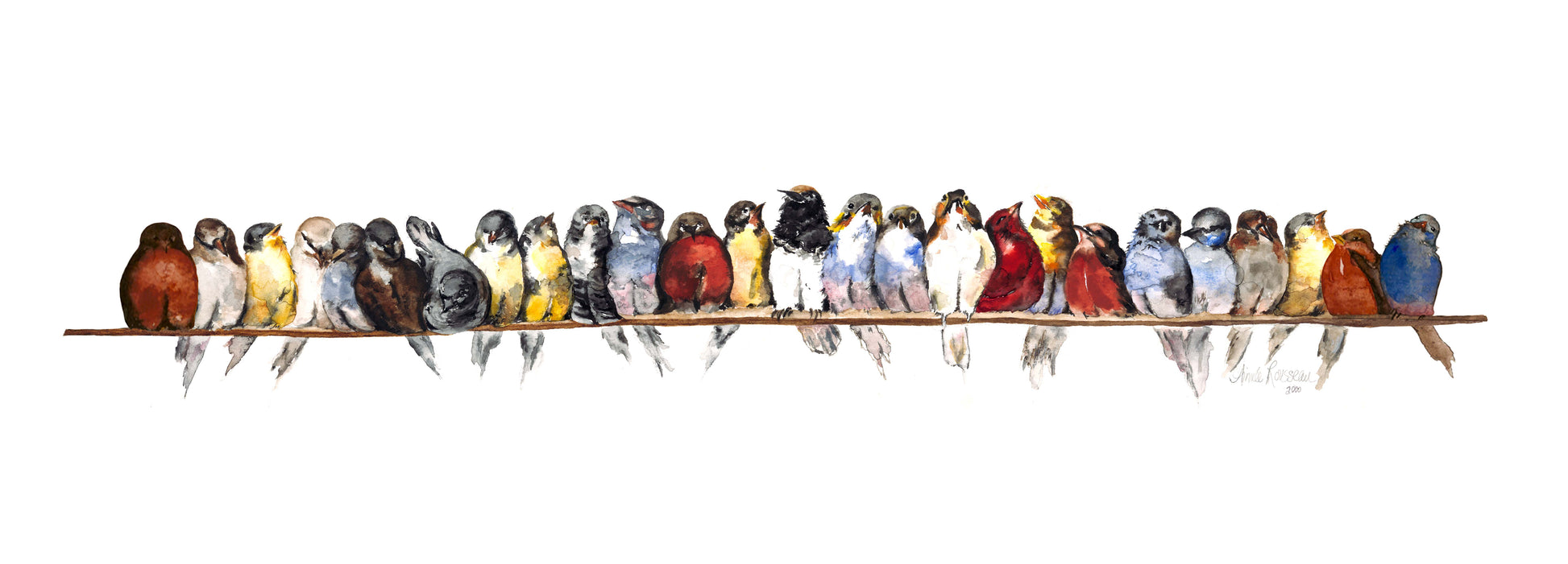 The Birds on a Wire giclee features archival pigmented inks on museum-quality, acid-free, pH-neutral paper. These giclees come in 3 sizes to fit any space you desire!