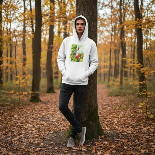 Elevate your wardrobe with a hoodie that blends playful artistry and eco-friendly comfort.