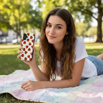Our Strawberry phone case features a dual-layer shock-absorbing TPU core wrapped in a tough polycarbonate shell. A UV-resistant coating keeps that signature Strawberry print vibrant and prevents yellowing for lasting style.