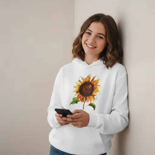 • Uplifting Sunflower illustration sparks conversation and compliments.